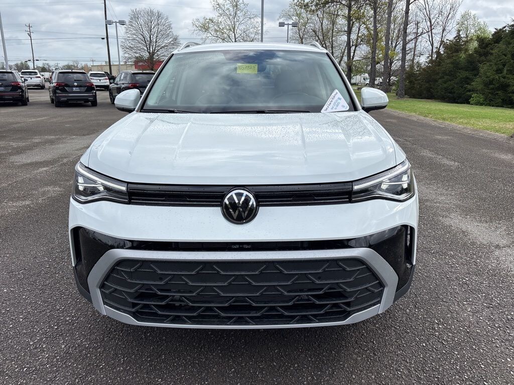 Pure White 2025 Volkswagen Taos 1.5T SE FWD 8-Speed Automatic with Tiptronic 1.5L I4 Turbocharged DOHC 16V LEV3-SULEV30 174hp Auto-Dimming Rearview Mirror w/HomeLink Connect, Black Wheel Package, Rubber Mats Kit, VW Care, Wheels: 18" Black Painted Alloy.
