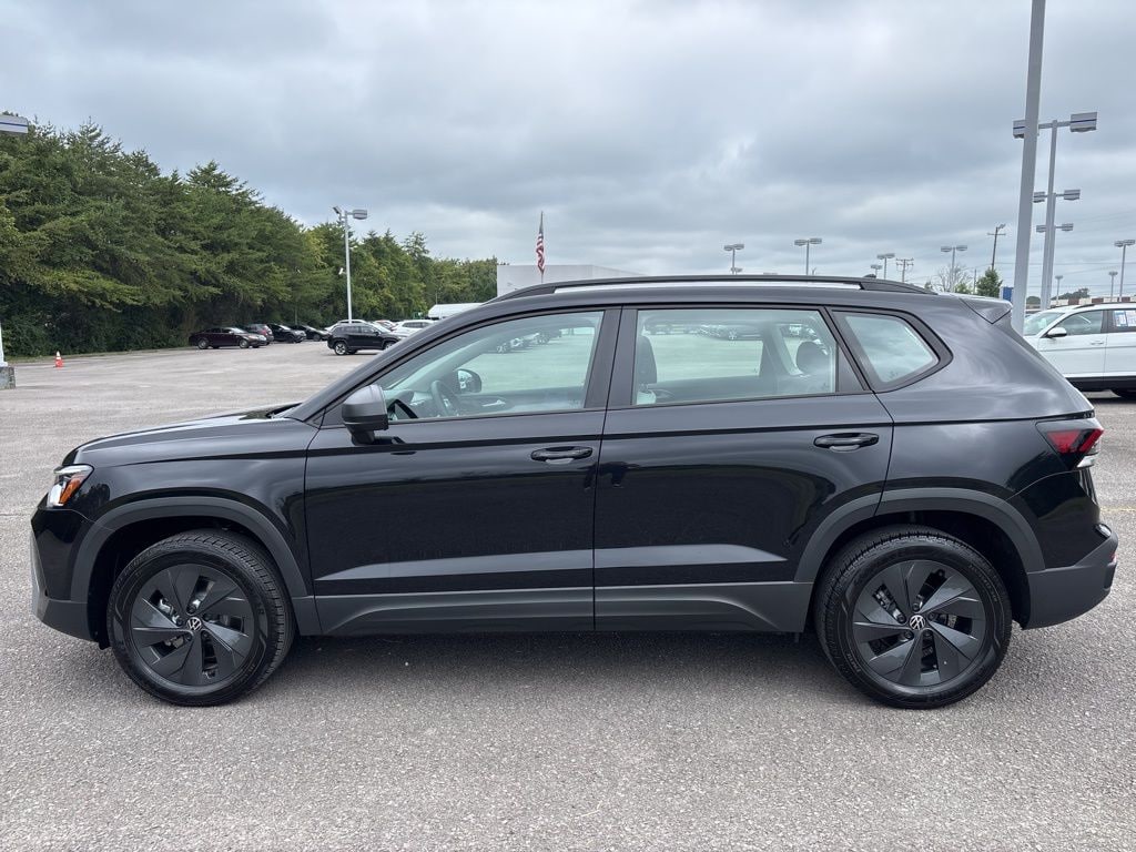 Deep Black Pearl 2025 Volkswagen Taos 1.5T S FWD 8-Speed Automatic with Tiptronic 1.5L I4 Turbocharged DOHC 16V LEV3-SULEV30 174hp Rubber Mats Kit, VW Care.