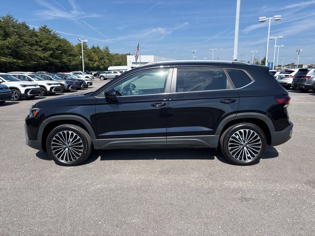 Deep Black Pearl 2025 Volkswagen Taos 1.5T SE FWD 8-Speed Automatic with Tiptronic 1.5L I4 Turbocharged DOHC 16V LEV3-SULEV30 174hp Auto-Dimming Rearview Mirror w/HomeLink Connect, Rubber Mats Kit, VW Care.