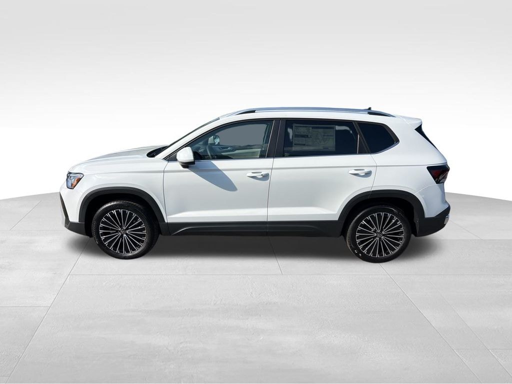 Pure White 2025 Volkswagen Taos 1.5T SE FWD 8-Speed Automatic with Tiptronic 1.5L I4 Turbocharged DOHC 16V LEV3-SULEV30 174hp Auto-Dimming Rearview Mirror w/HomeLink Connect, Panoramic Sunroof Package, Rubber Mats Kit, VW Care.