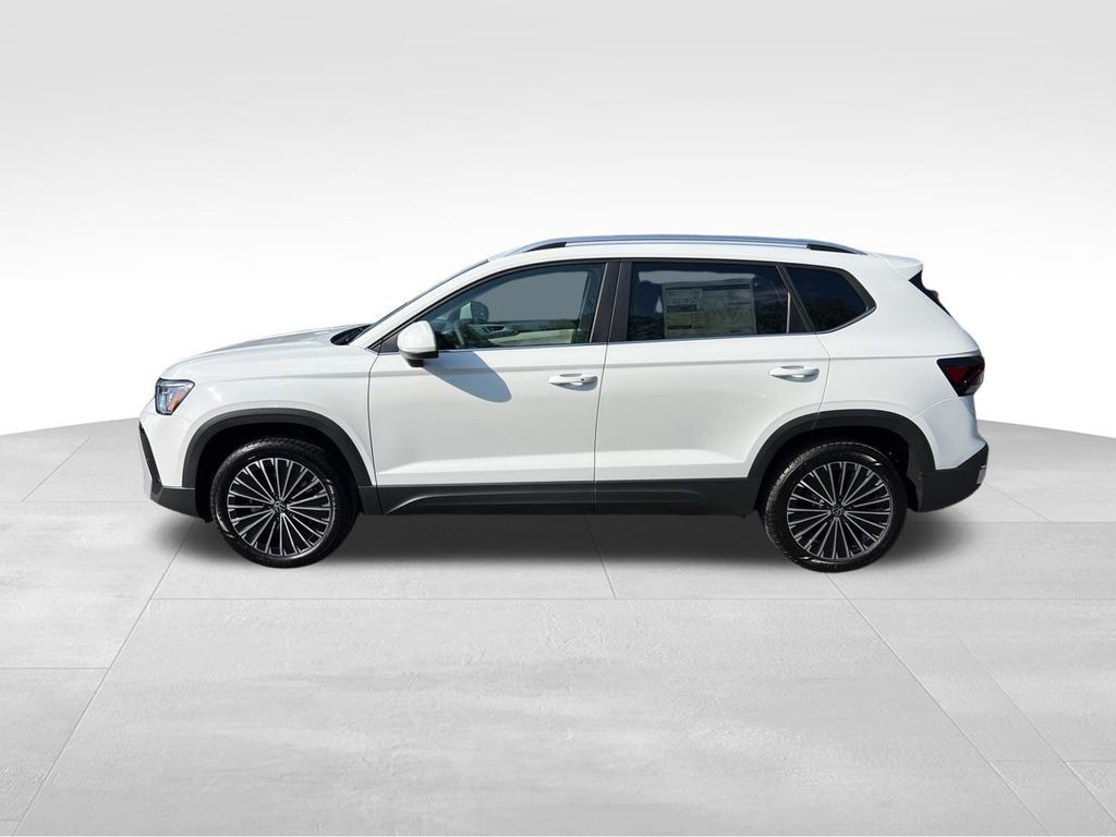 Pure White 2025 Volkswagen Taos 1.5T SE FWD 8-Speed Automatic with Tiptronic 1.5L I4 Turbocharged DOHC 16V LEV3-SULEV30 174hp Auto-Dimming Rearview Mirror w/HomeLink Connect, Rubber Mats Kit, VW Care.