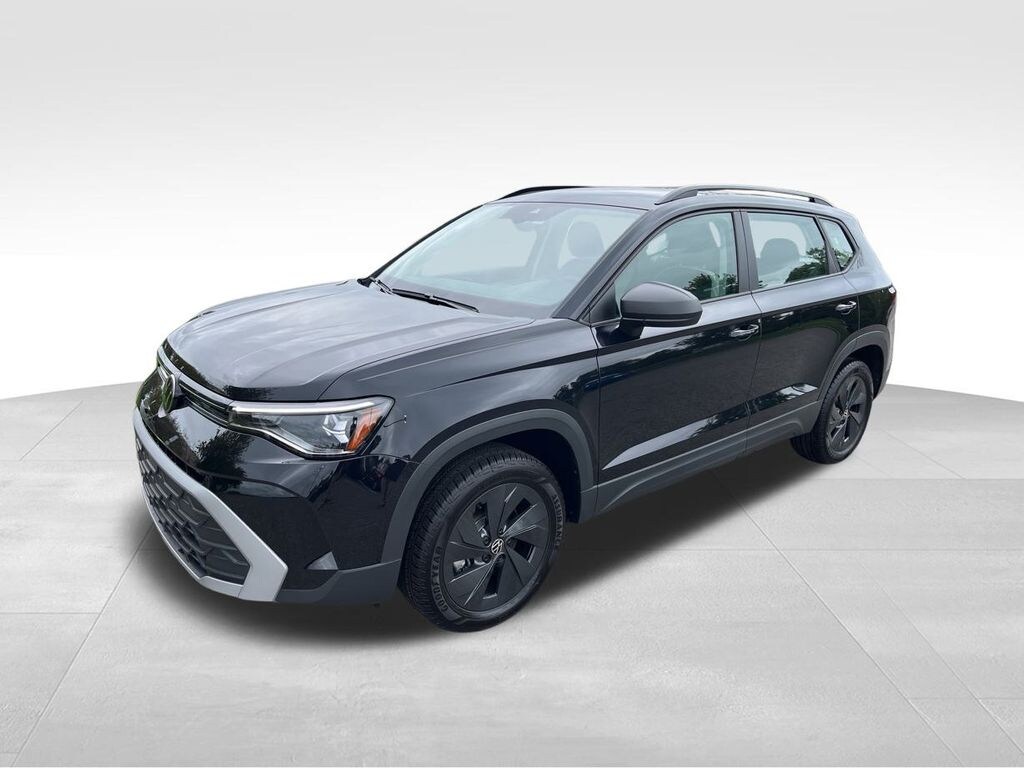 Deep Black Pearl 2025 Volkswagen Taos 1.5T S FWD 8-Speed Automatic with Tiptronic 1.5L I4 Turbocharged DOHC 16V LEV3-SULEV30 174hp Carpeted MojoMats (Set of 4), VW Care.