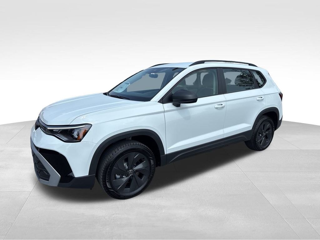 Pure White 2025 Volkswagen Taos 1.5T S FWD 8-Speed Automatic with Tiptronic 1.5L I4 Turbocharged DOHC 16V LEV3-SULEV30 174hp Rubber Mats Kit, VW Care.