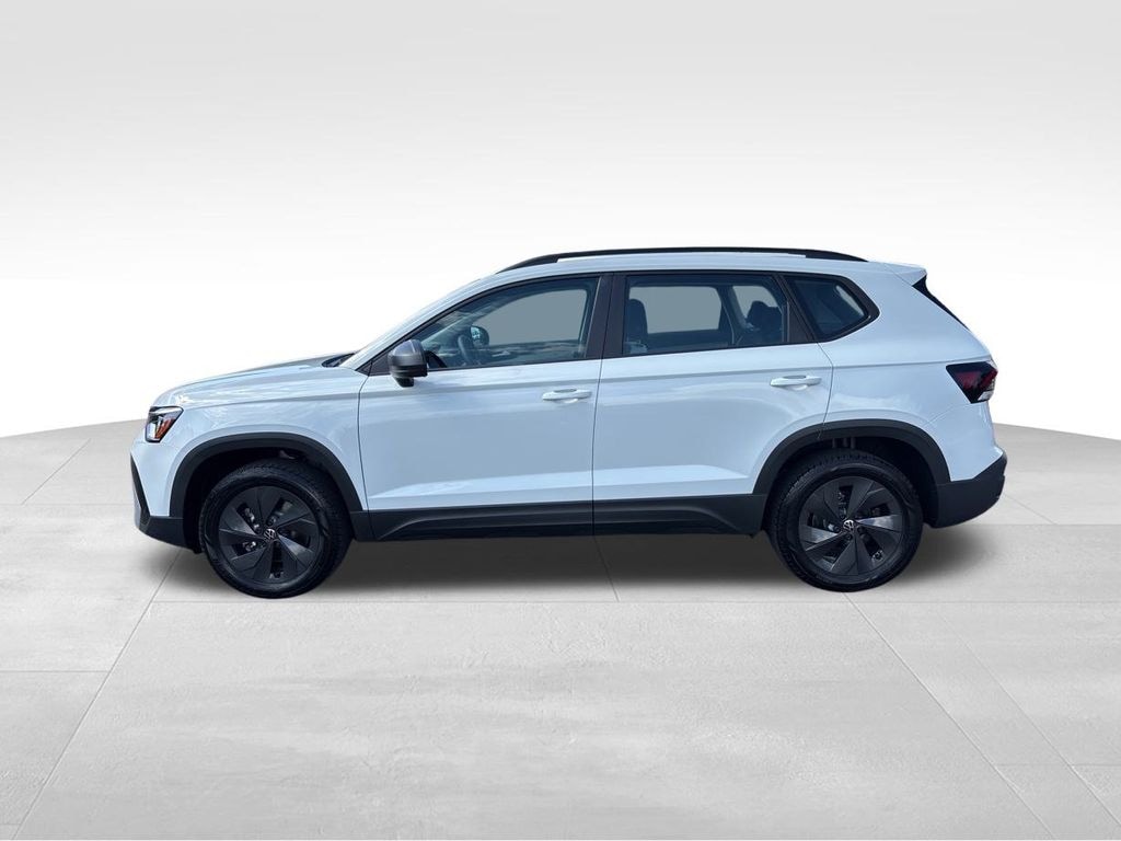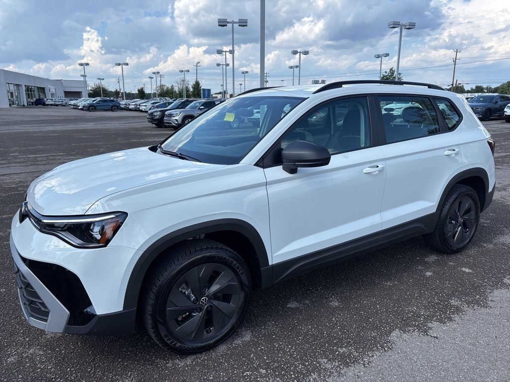 Pure White 2025 Volkswagen Taos 1.5T S FWD 8-Speed Automatic with Tiptronic 1.5L I4 Turbocharged DOHC 16V LEV3-SULEV30 174hp Rubber Mats Kit, VW Care.