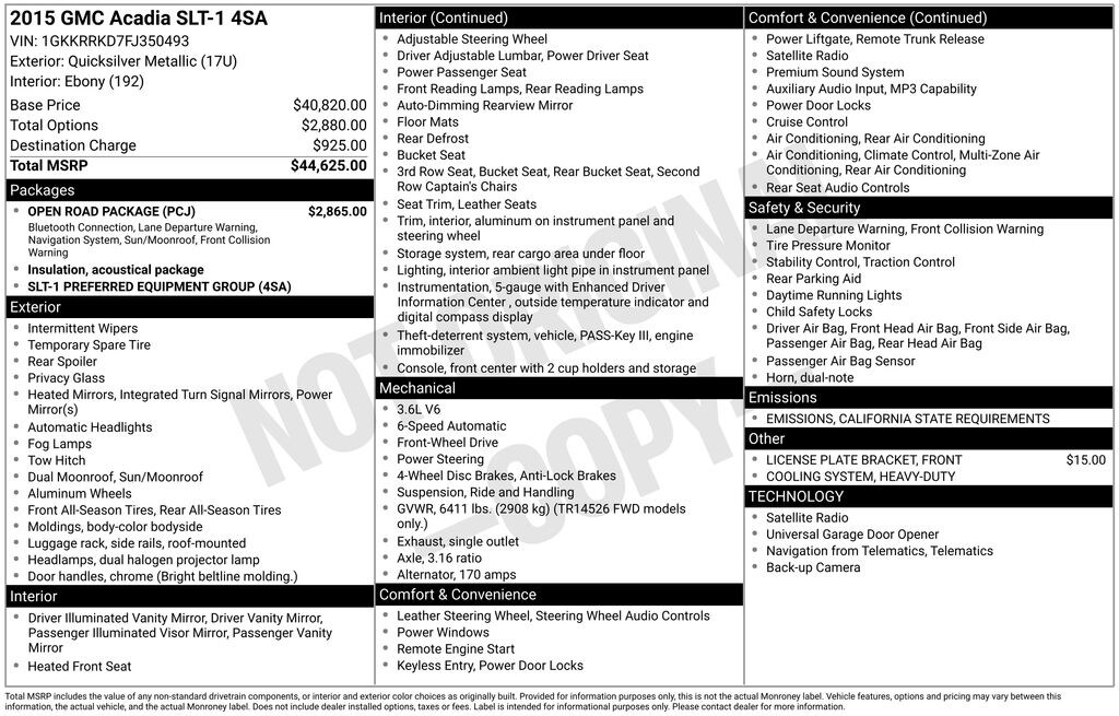 Carlock Volkswagen of Murfreesboro is excited to offer this outstanding 2015 GMC Acadia in Quicksilver Metallic. This vehicle has passed our comprehensive inspection.