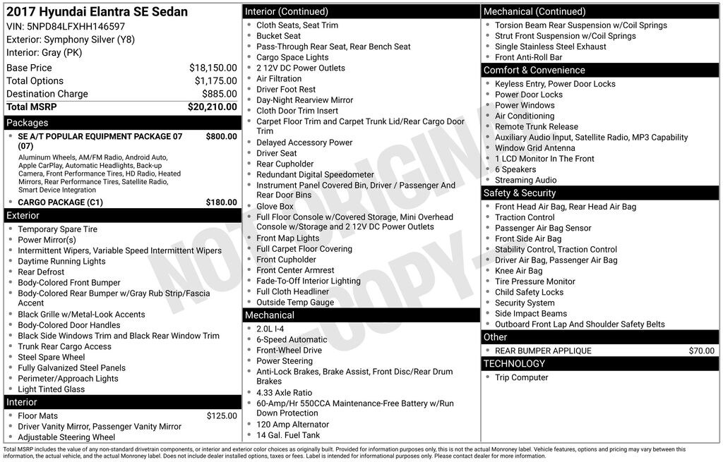 Carlock Volkswagen of Murfreesboro is excited to offer this beautiful 2017 Hyundai Elantra in Symphony Silver. This vehicle has passed our comprehensive inspection.