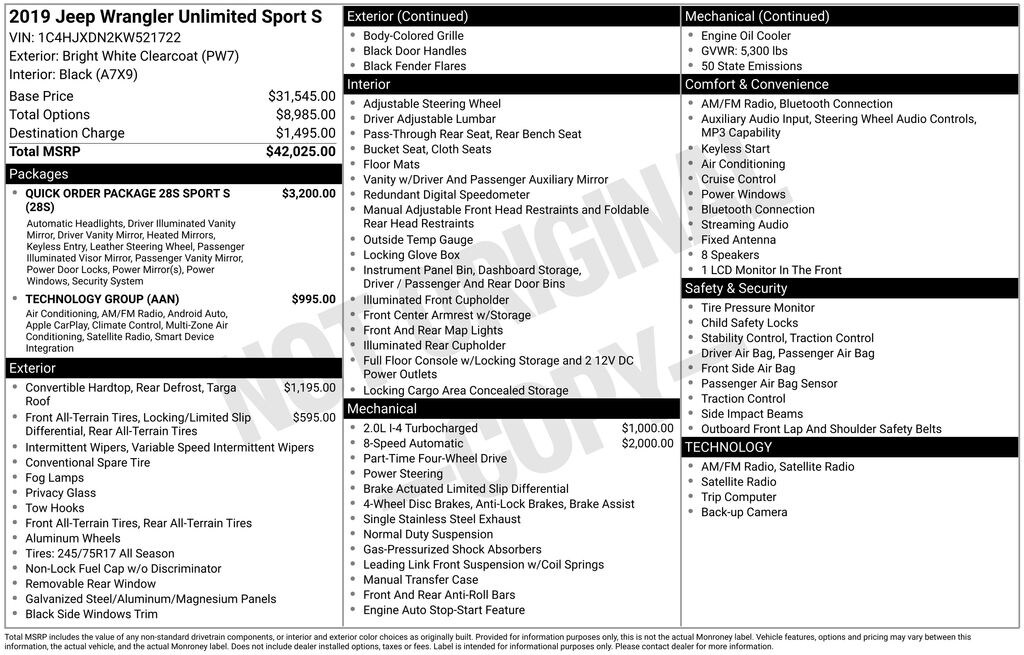 Carlock Volkswagen of North Nashville is pumped up to offer this good-looking and fun 2019 Jeep Wrangler in Bright White Clearcoat This vehicle has passed our comprehensive inspection.