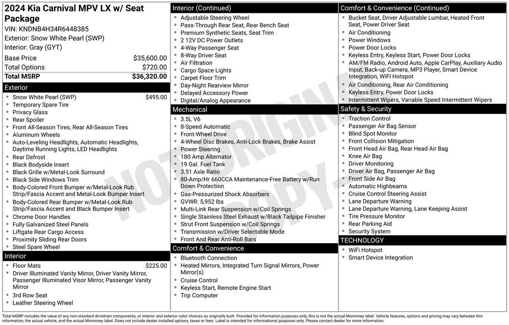 Used 2024 KiaCarnival LX Seat Package