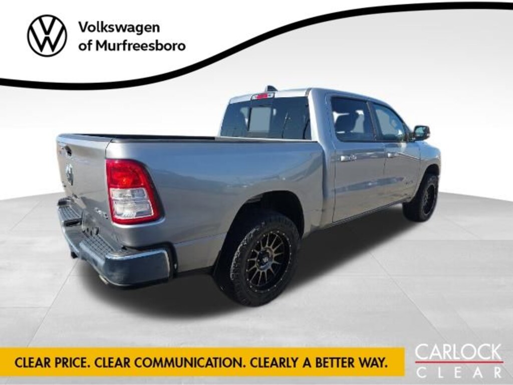 With its striking Billet Silver Metallic Clearcoat exterior and chrome accents, this Ram 1500 Big Horn/Lone Star makes a bold statement on the road. The 20-inch aluminum chrome-clad wheels and premium features elevate the overall style and sophistication of this impressive truck.