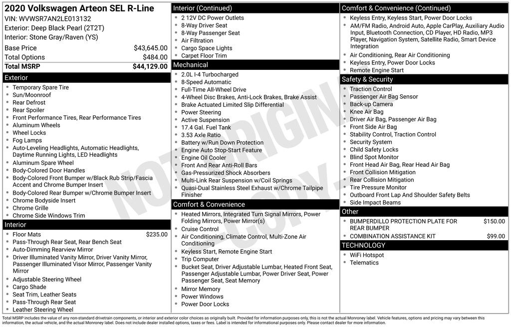 2020 Volkswagen Arteon 2.0T SEL R-Line 4Motion Certified.