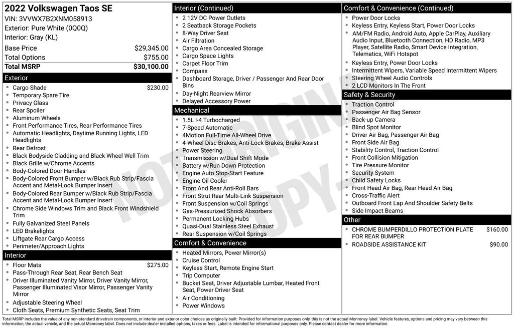 Carlock Volkswagen of North Nashville is pumped up to offer this good-looking 2022 Volkswagen Taos in Pure White This vehicle has passed our comprehensive inspection.