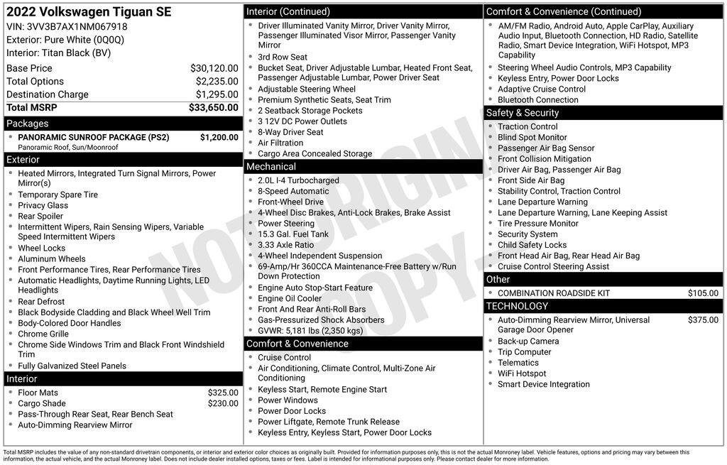 Experience the perfect blend of style, performance, and versatility with this 2022 Volkswagen Tiguan 2.0T SE. This well-equipped SUV offers a remarkable combination of features that make it an exceptional choice for discerning drivers.